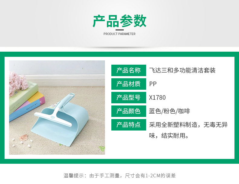 品牌名稱(chēng):飛達三和 生產(chǎn)地區:中國·浙江·臺州 產(chǎn)品貨號:X1780 裝箱數:12 產(chǎn)品尺寸:255*230*145mm 外箱尺寸:68*52*16.5cm 條形碼:6931643817387 飛達三和X1780清潔刮鏟